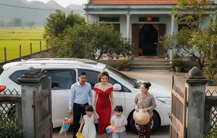 Đi bên cạnh anh là một cô gái trẻ ôm đứa bé tầm hai tuổi, tay dắt thêm một đứa lớn hơn.