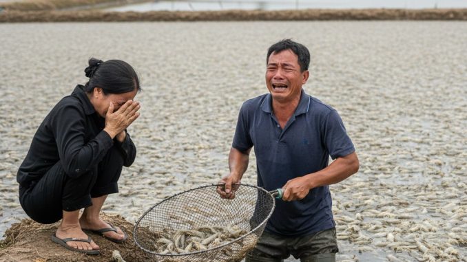Chỉ trong một đêm – hàng chục tấn tôm trị giá hàng tỷ đồng chết sạch.