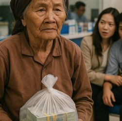 Bà lão đồng nát ăn măc b;ẩn thỉ;;u vào ngân hàng rút tiết kiệm 2 triệu đồng để đóng học …